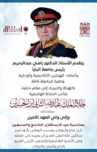 جامعة البترا تهنئ بمناسبة عيد الاستقلال التاسع والسبعين