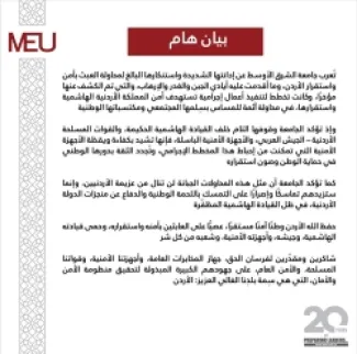 شجب واستنكار من جامعة الزيتونة الاردنية