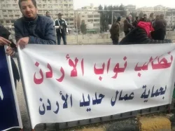 عمال (حديد الأردن) يعتصمون أمام مجلس النواب