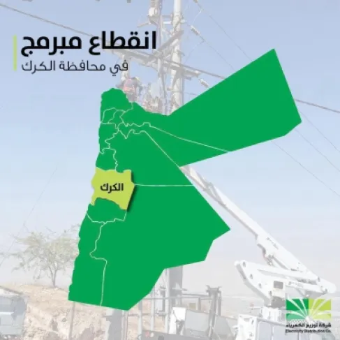 فصل التيار الكهربائي عن مناطق في الكرك الاثنين