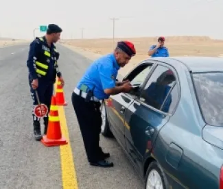 الدوريات الخارجية توزع كمامات ومياه على السائقين