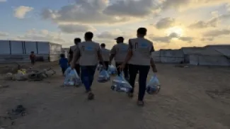 الحملة الأردنية توزع 850 طردًا غذائيًا في أكبر مخيم للنازحين بدير البلح