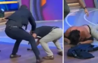 على الهواء مباشرة.. مصارع يخرج عن سيطرته ويضرب والد منافسه - فيديو