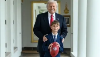 شاهد.. ترمب يلعب كرة القدم مع حفيده في البيت الأبيض