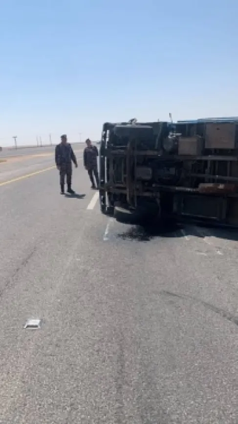 إغلاق مؤقت لمسرب على طريق الأزرق بسبب تدهور مركبة