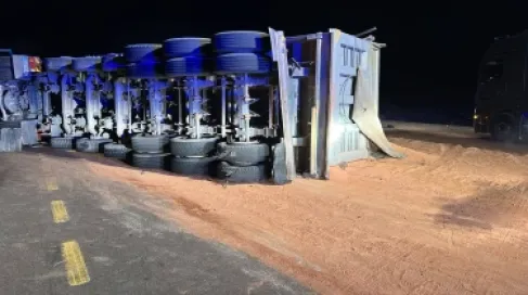 بالصور .. اغلاق لحركة السير بالكامل على الطريق الصحر...