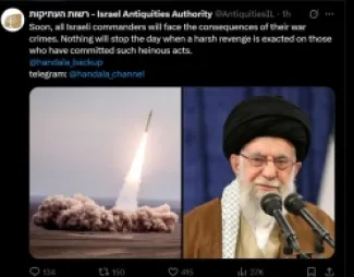 اختراق حساب هيئة التراث الإسرائيلية بصورة لخامنئي ورسالة إلى جميع قادة إسرائيل