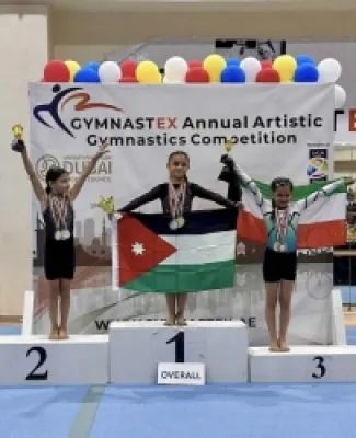 الاردنية إيليانا مهند برهوم تحصل على المركز الأول عن فئتها لبطولة دبي الدولية للجمباز .. مبارك