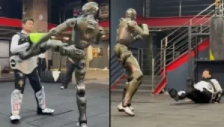 مشهد صادم في الصين.. روبوت يركل مخترعه ويسقطه أرضاً