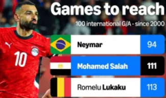 صلاح يتفوق على أساطير العالم في نادي الـ100