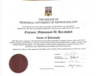 الدكتوراه لإنتصار الحراحشه من جامعة ميموريال -كندا