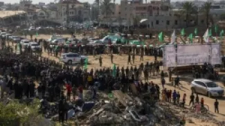 علم الأردن على منصة تسليم الأسرى بغزة