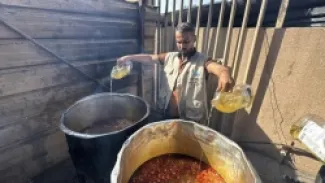 الحملة الأردنية الإغاثية توزع وجبات أرز ولحم على النازحين جنوب غزة