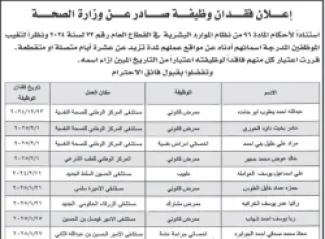 فاقدون لوظائفهم في وزارة الصحة - أسـماء