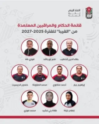 فيبا يعتمد 10 حكام أردنيين ضمن القائمة الدولية للفترة 2027-2025