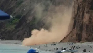انهيار جرف صخري يفزع المصطافين على شاطئ بريطاني دون إصابات