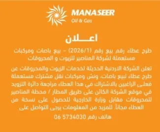 طرح عطاء لبيع باصات ومركبات مستعملة لشركة المناصير