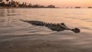 مصر.. ظهور مفاجئ لتمساح مربوط الفم على شاطئ الإسكندرية