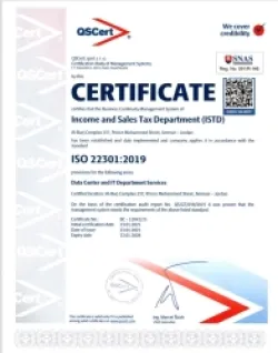 الدخل والمبيعات تحصل على شهادة الآيزو 22301