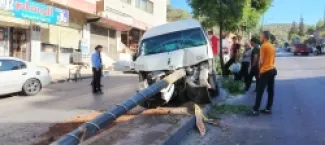حافلة تقتلع عمود كهرباء في عجلون وإصابات بين الركاب - صور