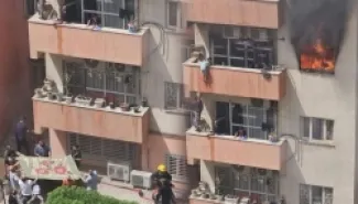 مشاهد تحبس الأنفاس لأطفال يقفزون من مبنى مشتعل في بغداد