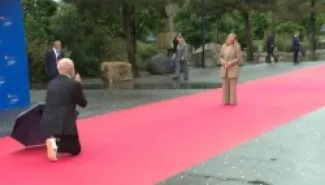 تريند عالمي.. رئيس وزراء ألبانيا يجثو على ركبته في استقبال ميلوني