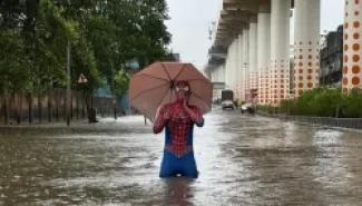 "سبايدر مان الغلابة".. بطل خارق يواجه الفيضانات في الهند ويخطف الأنظار