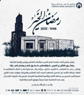رئيس وأسرة جامعة عمان العربية يهنئون بحلول شهر رمضان