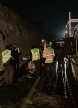أشغال جرش تزيل إنجرافات أتربة على طريق عمان