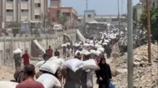 دخول كميات كبيرة من أكياس الطحين إلى غزة من خلال الأردن - فيديو