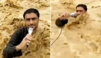 فيضان يبتلع مراسلاً أثناء بث مباشر من باكستان - فيديو