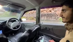 باكستاني يقود سيارته من الخلف بلوحة مفاتيح