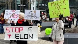 أحرقوا تسلا..احتجاجات ضد ماسك أمام شركته
