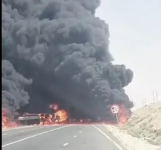 الأردن.. حريق صهريج وشاحنتين إثر تصادم مروع على (الصحراوي)