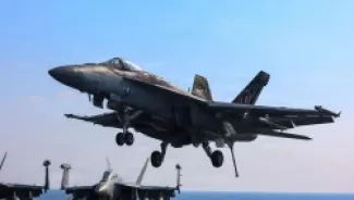 طائرات إف-18 تهبط على حاملة لينكولن وسط بحر العرب