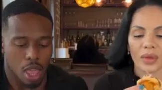 مشهد صادم.. سيارة تحطم زجاج مطعم وتكاد تصدم زوجين مؤثرين