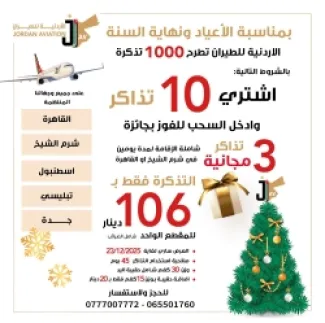 In celebration of the holidays and the end of the year.. Huge offers from Jordanian Airlines - Details