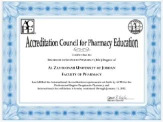 Renewal of the American International Accreditation (ACPE) for the Faculty of Pharmacy at Zaytouna University of Jordan for six
